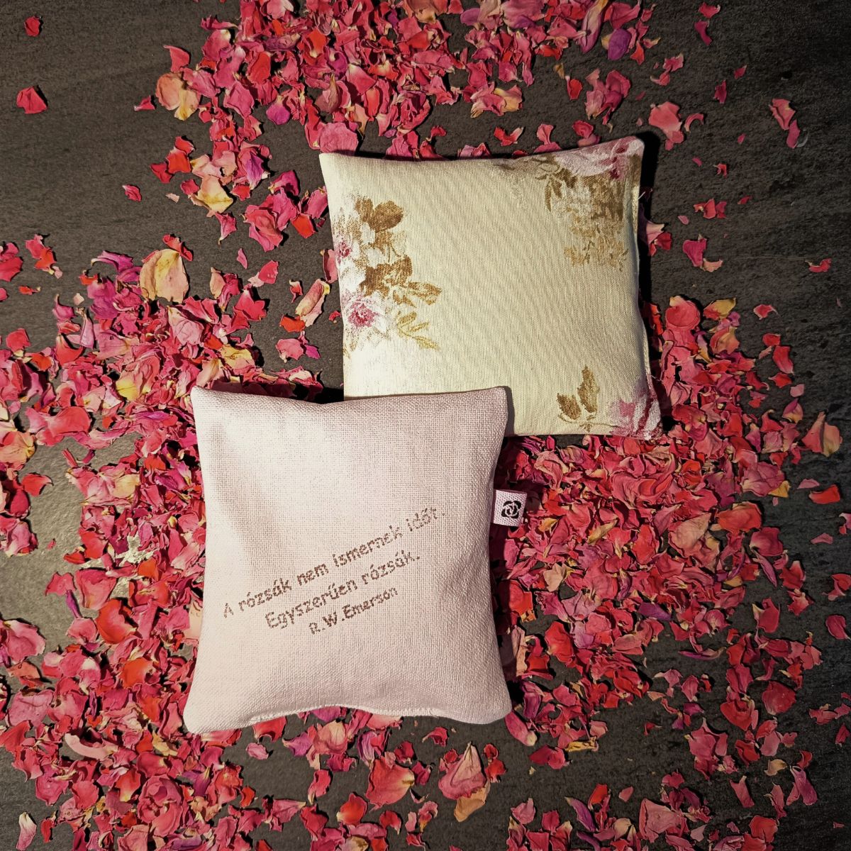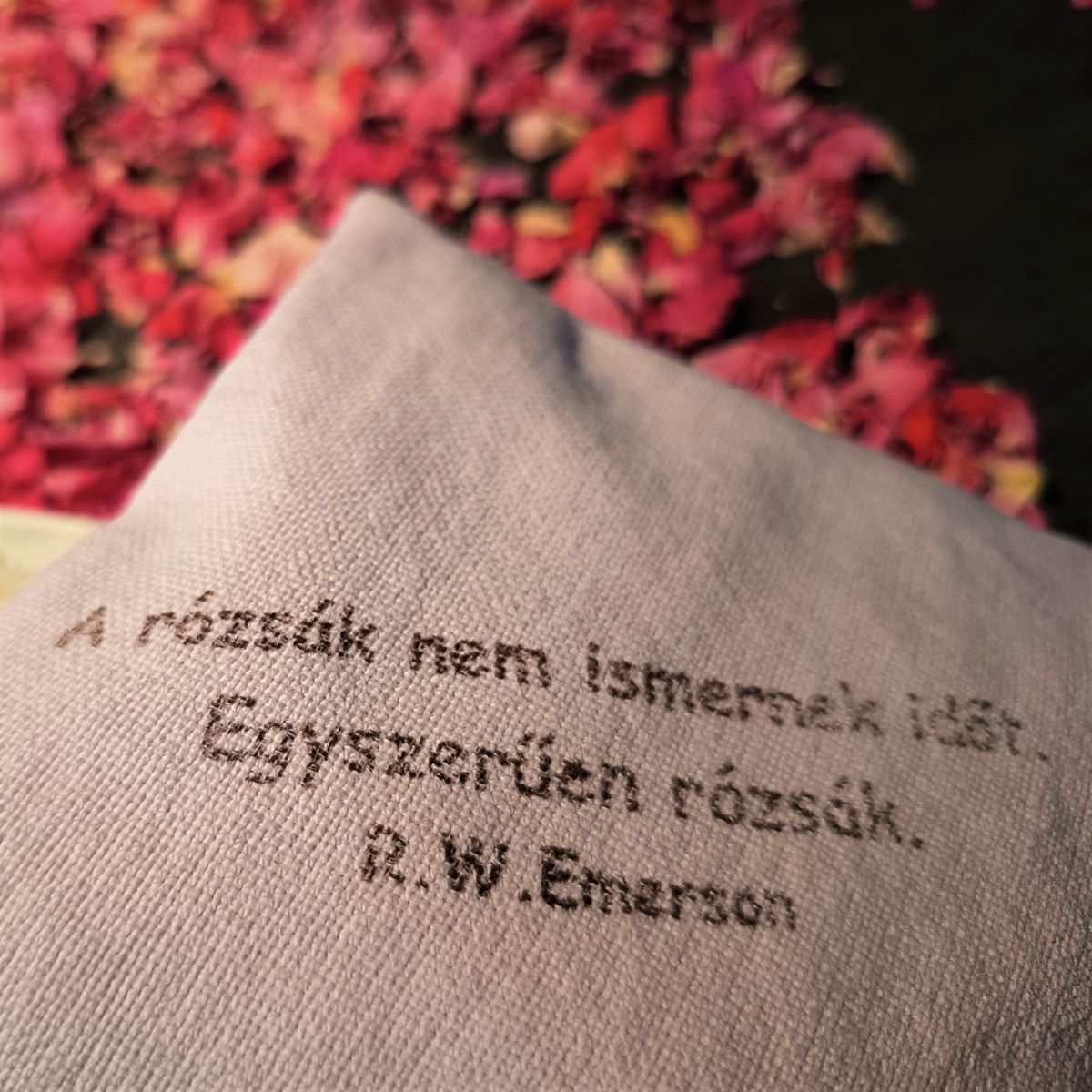 A Rózsa – Mantra – Párna többféle színben és felirattal készül, rendelés során ezekből véletlenszerűen választunk.